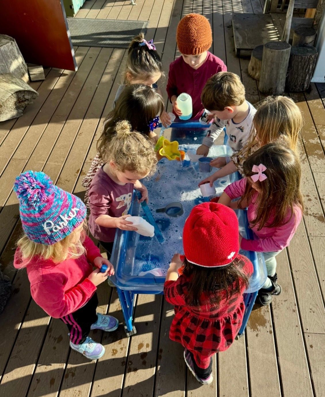 We want to highlight some of the benefits of our open door play program. After our morning routine we open our classroom door to the playground allowing free choice between indoor and outdoor play throughout the day. This unstructured time enhances cognitive development, fine and gross motor skills, and social interactions. The children can follow their desire or need for action or quiet focused activities. The teachers observe and facilitate experiences rather than direct them. The children lead their own learning and have fun in the process.